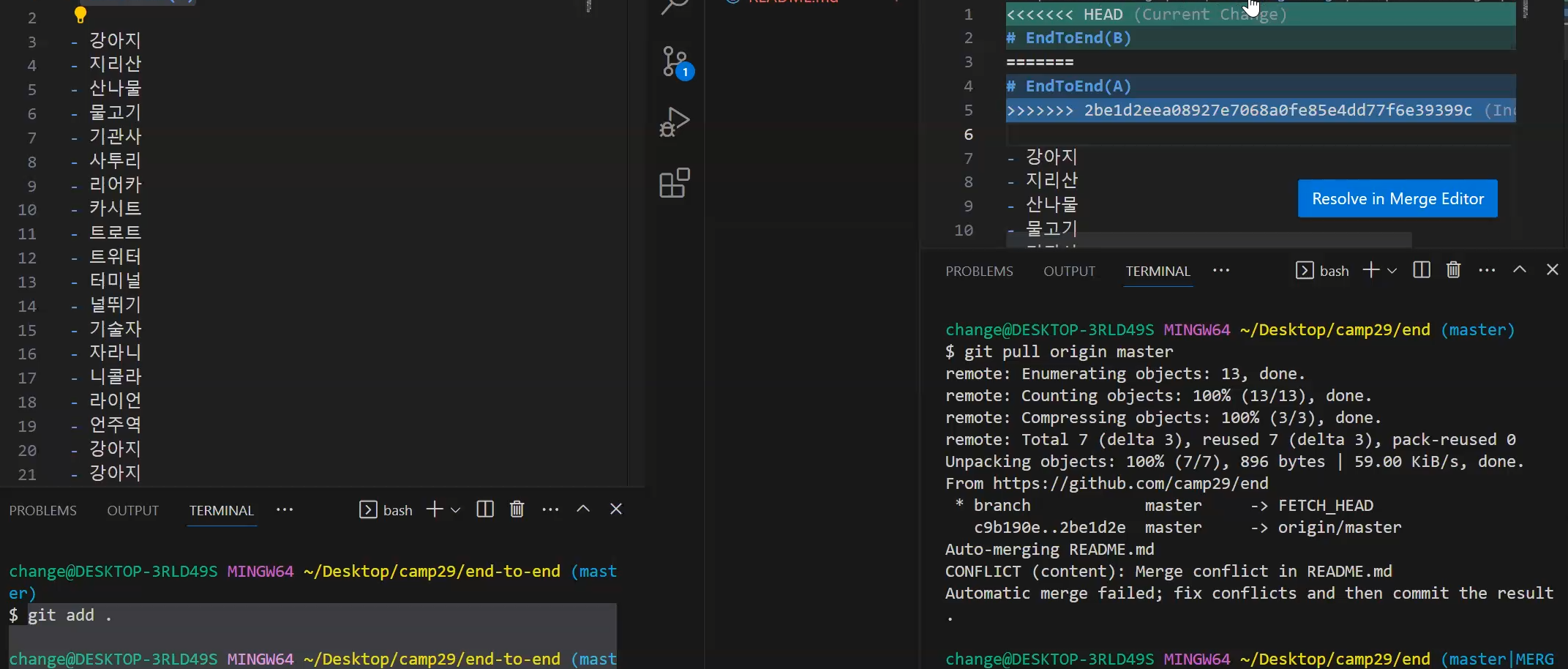 - git bash : camp29 폴더로 가서 git bash로 열기